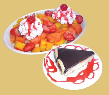 melão, banana, abacaxi, maçã, laranja e chantily)