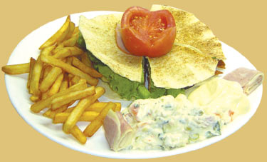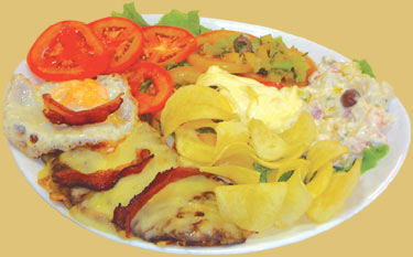 mussarela, tomate, vinagrete, maionese, alface e fritas)